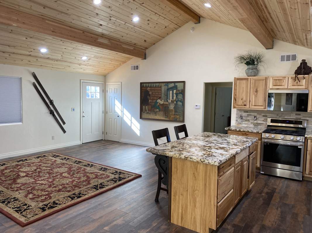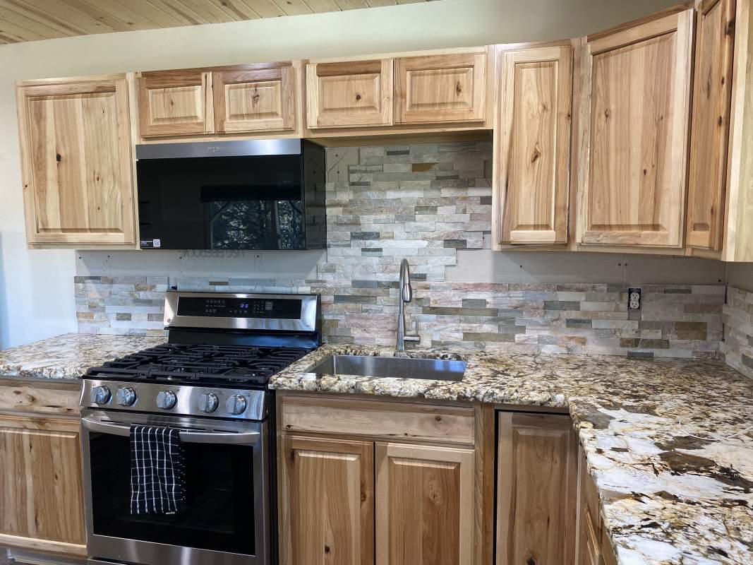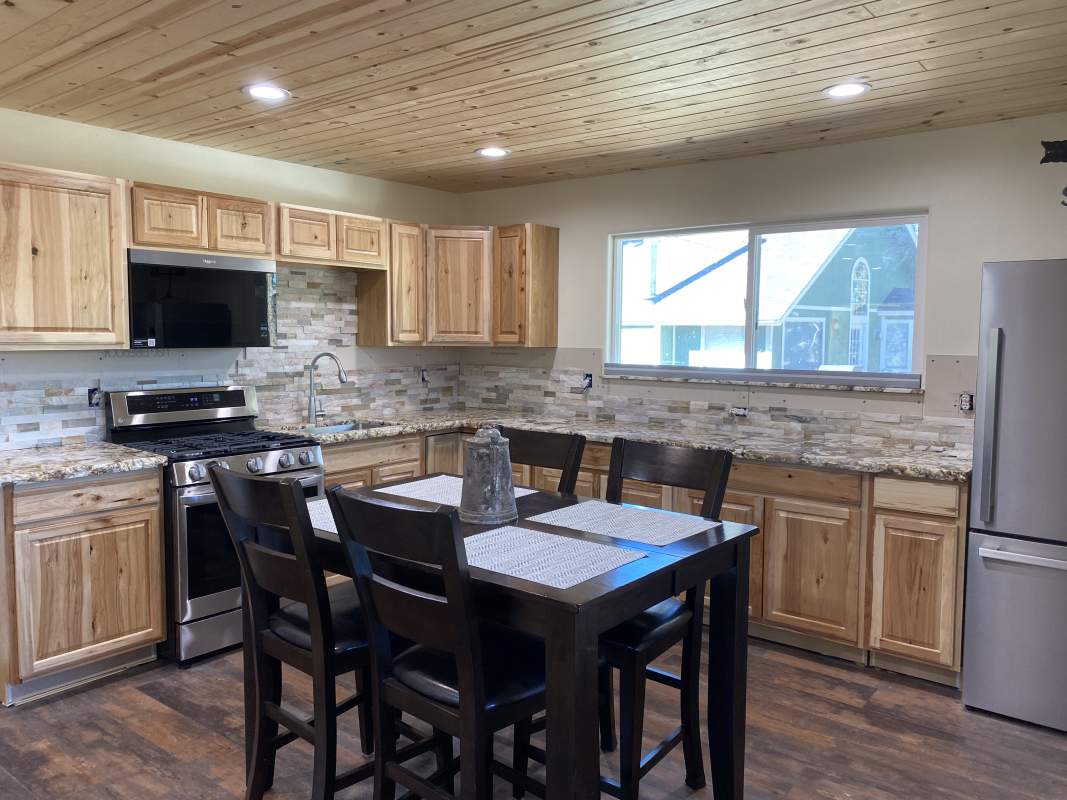 Looking for versatility? Put the final finishing touches on the nearly-completed remodel of this beautiful custom Shay Meadow home. This property has so much to offer. Main level great room style floor plan has vaulted T&G ceilings and recessed lighting; modern gas fireplace with a hearty hand-hewn log mantel. Sparkling kitchen has an island, high-end stainless, rough-edge granite, and stacked stone backsplash. Two bedrooms and bath on the main level. Beautiful and durable distressed luxury vinyl plank flooring flooring throughout (considered the most water resistant flooring on the market). Upper level could be used as a separate mother-in-law unit or rental space; has separate entry with it’s own remodeled kitchen, living area, bedroom, bath, and private covered deck with views of the meadow in the distance. The majority of insulation, plumbing, and electrical is new throughout, including two new electrical panels, 220V for RV or EV in the 3-car garage which also has heat and laundry hookups. Two new forced air heaters (one for each level), tankless water heater, new windows and doors, new roof on front part of house. Large property with fenced back yard and easy all-season access with room to park RV or boat. This would make an excellent full-time residence, multi-generational home, income-producing rental, or some combination thereof.