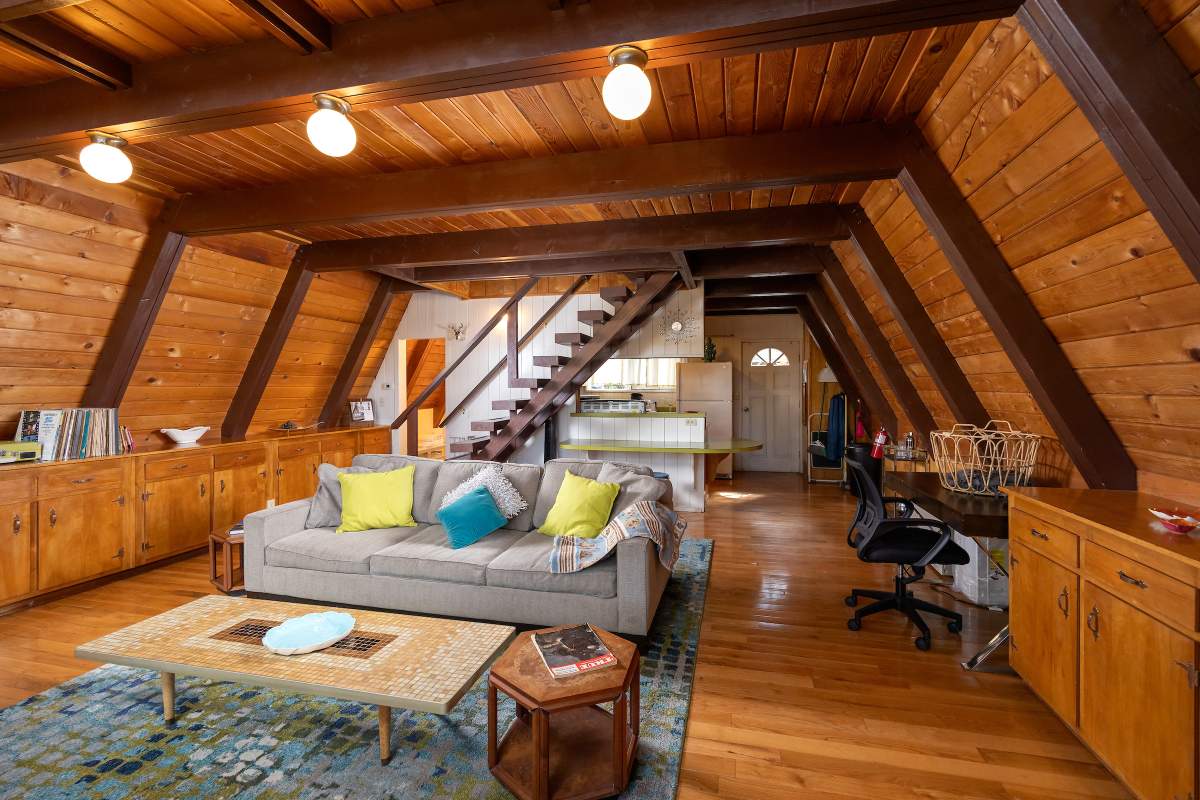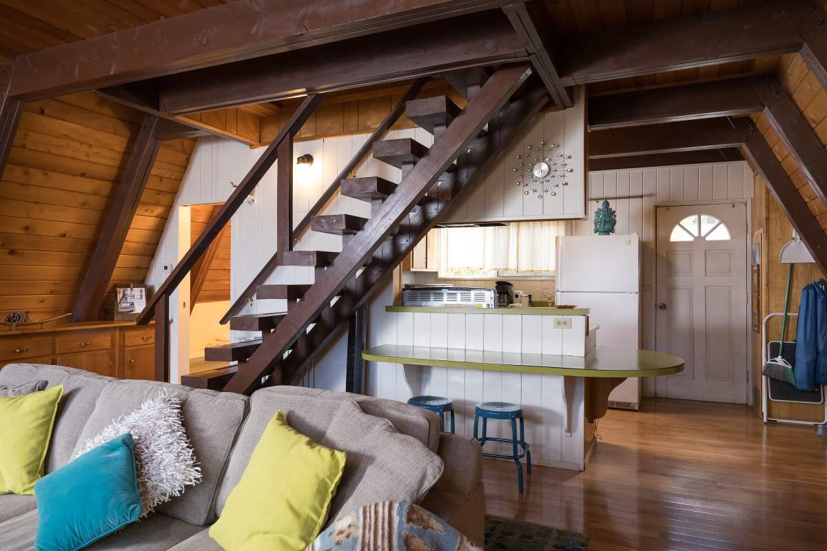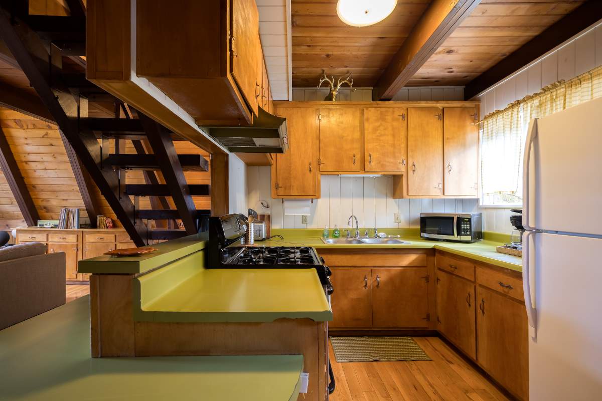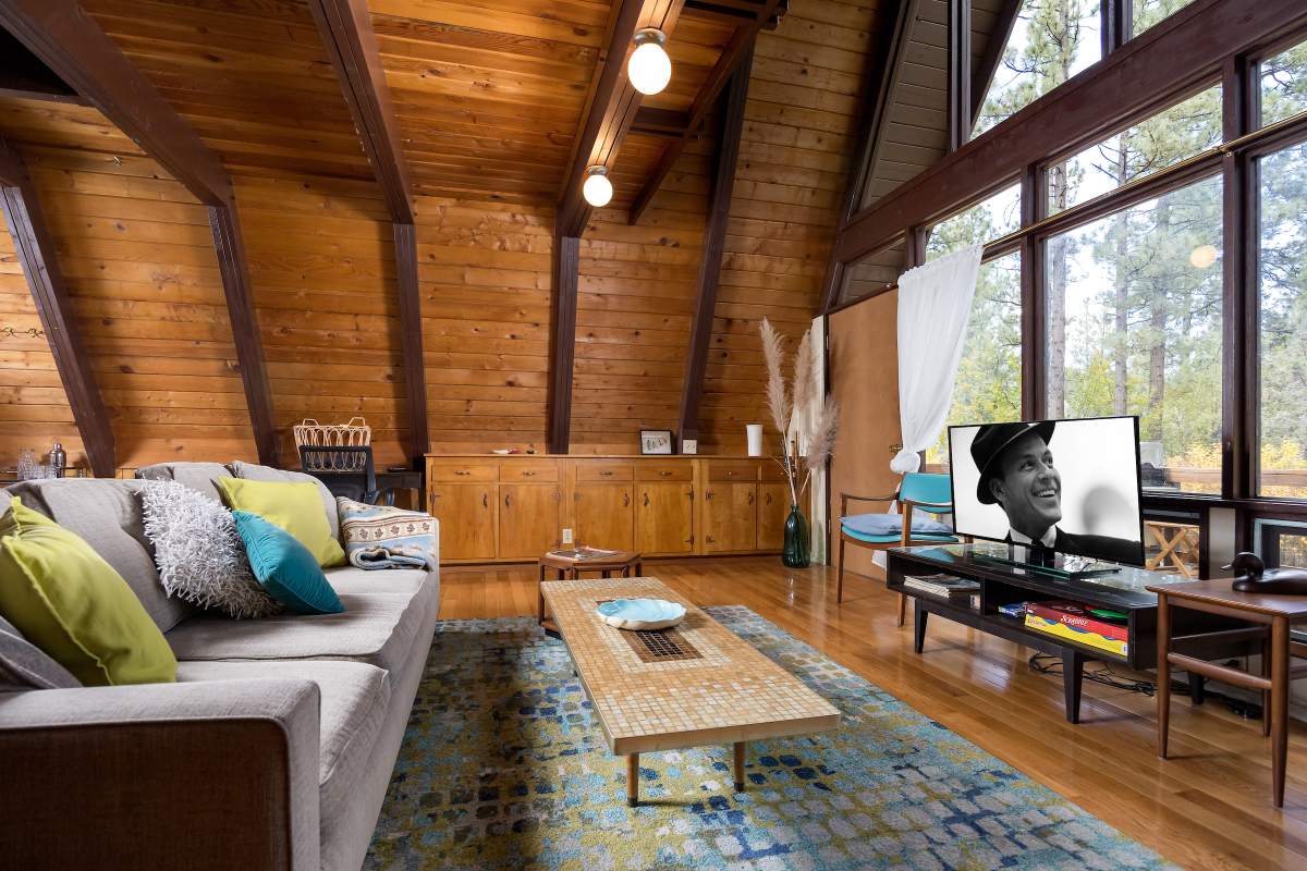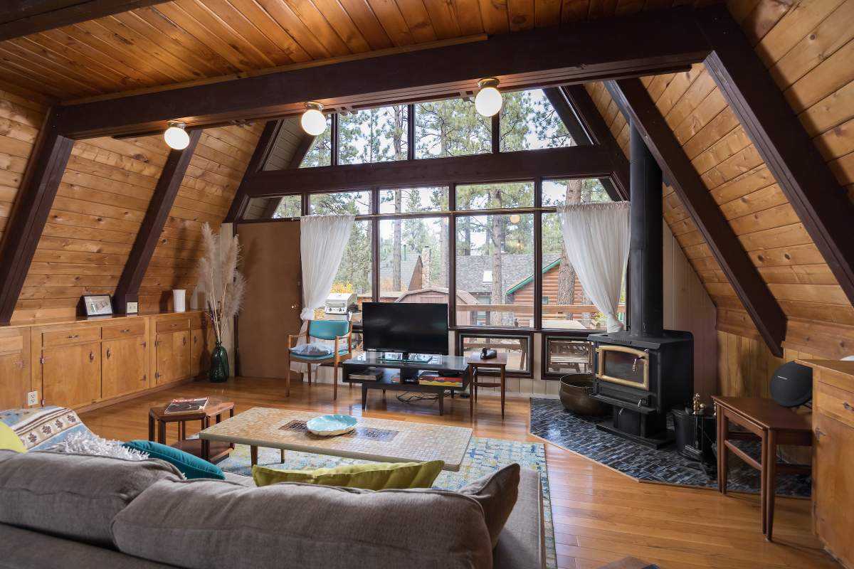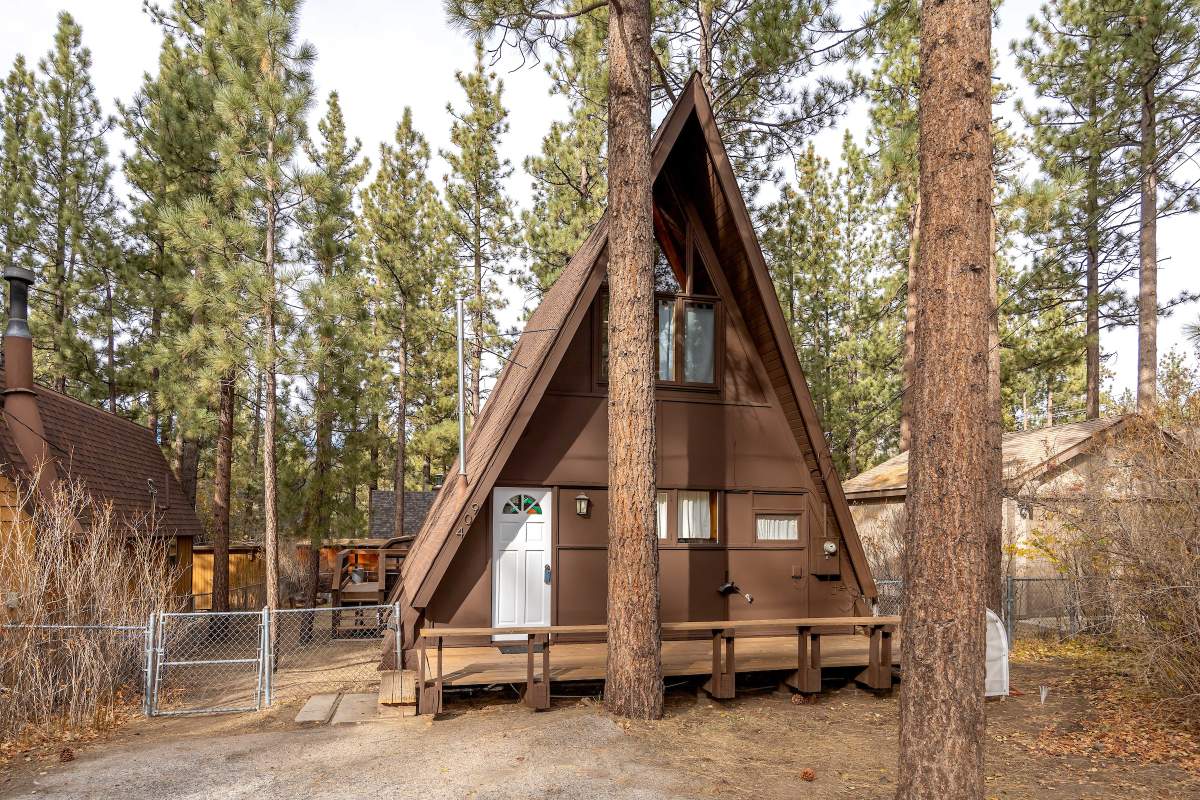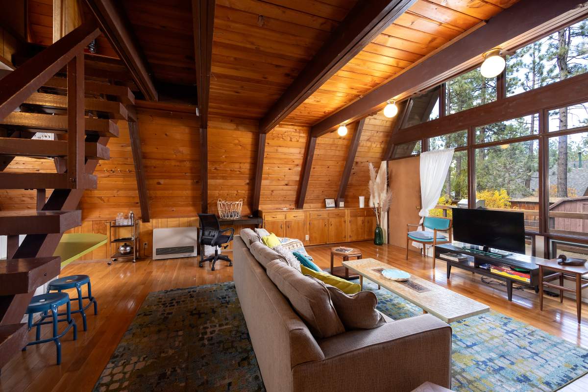 This classic A-frame cabin has a simply irresistible vintage vibe. Available for the first time on the market, built by the owner’s father in 1962 and loved by the same family ever since. As soon as you walk in the door you are greeted by a warm woodsy mountain cabin feel that so many are looking for. Beamed ceilings, abundant T&G, beautiful wood floors throughout. A wall of windows brings the outside in with views of the surrounding pines. Cozy up next to the free-standing wood burning stove after a day on the slopes. Bathroom on main level, two bedrooms up, one is open loft style. Enjoy the fresh mountain air and your morning coffee or evening martini out on the spacious back deck and front porch. Newly refinished exterior. Large fenced yard and storage shed. Easy four-season access and level parking. Groovy baby!