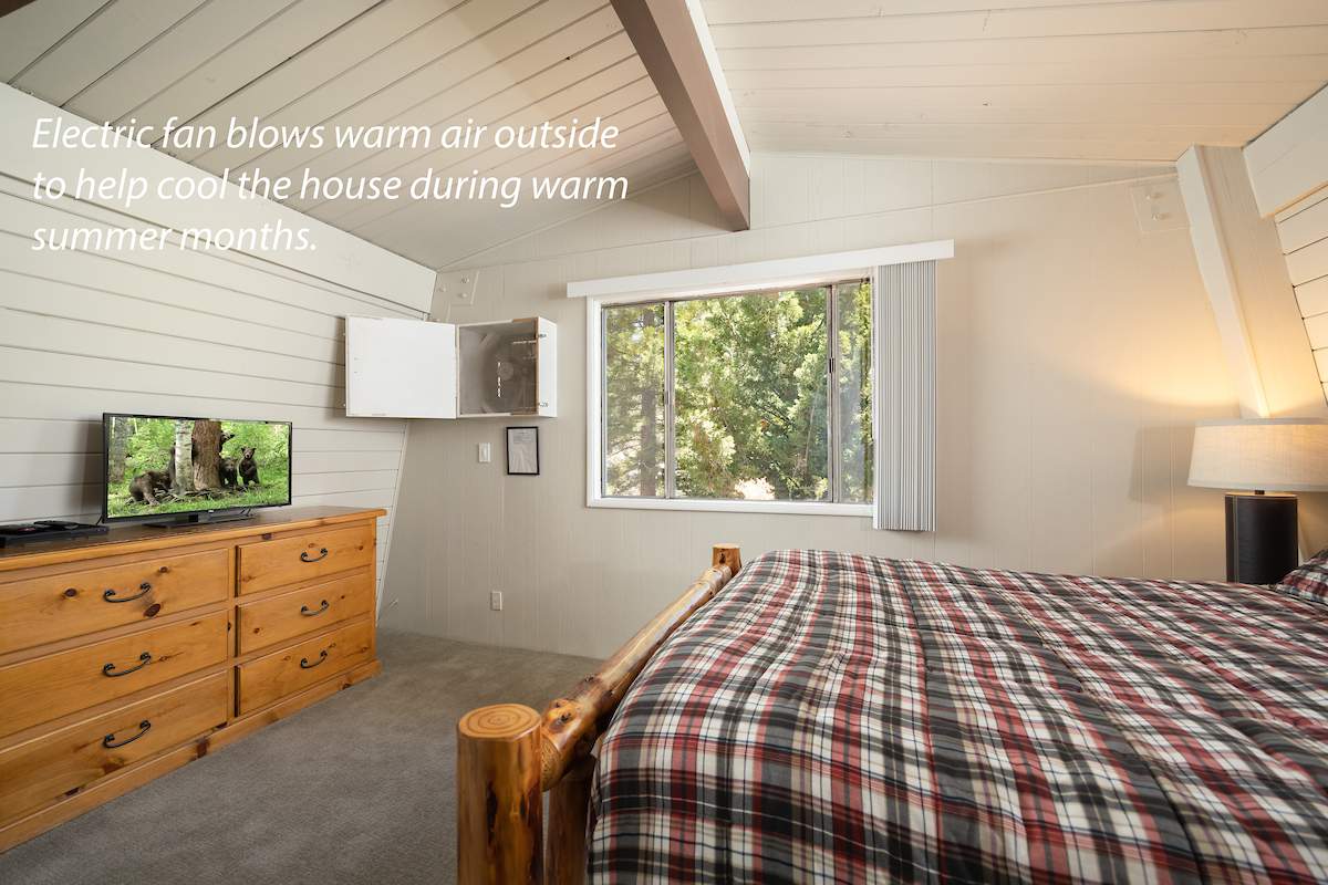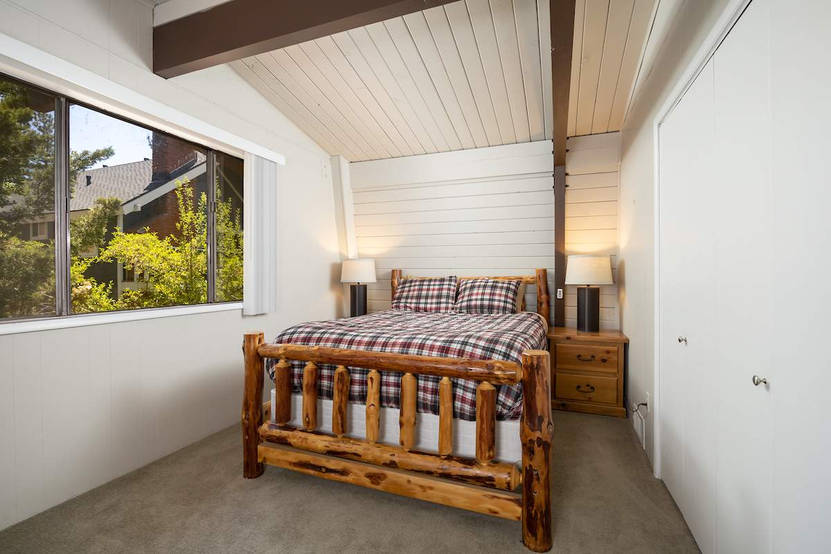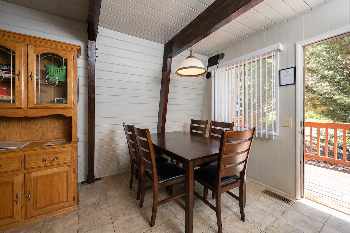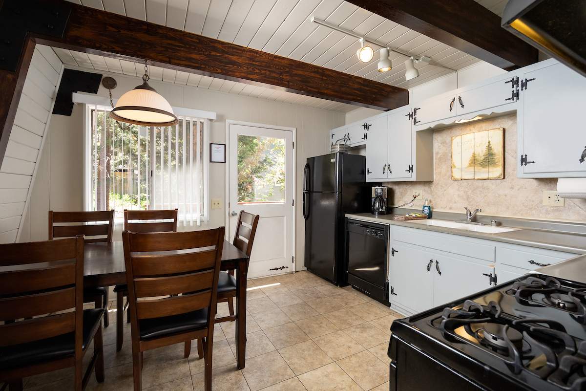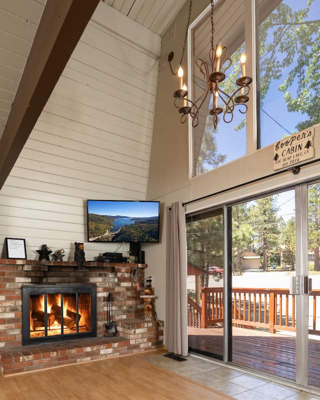 Awesome central Big Bear Lake location so close to the lake and less than one mile from the village. Popular full-roof gambrel-style cabin featuring high beamed ceilings, a cozy brick fireplace, and laminate flooring. Eat-in kitchen with all the amenities. Remodeled bathroom on main level with custom vanity and glass shower doors. Two bedrooms upstairs, one is loft-style. Newer central forced air furnace and water heater. Newly added high powered exhaust fan upstairs to keep cabin cool in the warm summer months. Enjoy the fresh mountain air out on the spacious redwood deck which surrounds the home on three sides. Easy all-season access and level parking. Has been a highly successful vacation rental. Turnkey and ready to enjoy today!