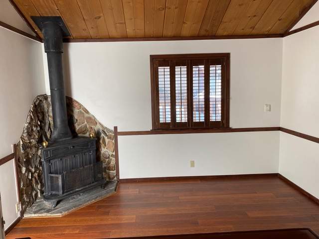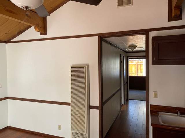 Popular chalet-style cabin, comfortable single level in upper Sugarloaf near national forest. Wood beamed ceilings and durable wood laminate style flooring. Efficient Franklin stove in the living room. Kitchen has custom cabinetry offering plenty of storage plus a breakfast bar. Fresh interior paint and bedrooms have new carpet. Windows feature wood plantation shutters. Laundry hookups for a stacker washer/dryer. Huge quality storage shed in the fenced back yard plus a concrete slab for patio or spa. This property was purchased by current owner at foreclosure post auction bid pursuant to SB 1079. SB 1079 was put in place to promote homeownership and therefore priority for offers are given to owner occupant buyers.