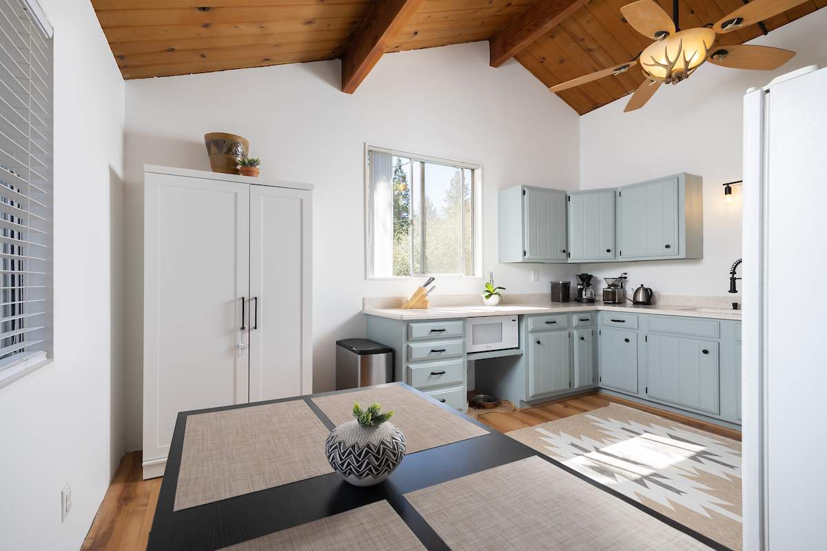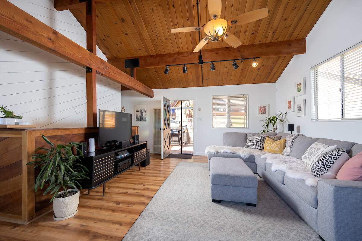 Check out this one-of-a-kind cozy getaway with a view! This bright, modern 2 bedroom, 2 bathroom gem comes with $60K in upgrades/remodeling including all new windows, 2 new decks, roof and roofing insulation, interior/exterior paint, carpet, fireplace tile, electrical panel, upstairs bath upgrades, tankless water heater and stylish lighting. Lots of hidden treasures with outdoor living areas off both decks complete with views, 2 huge storage sheds, built in tuning area for snowboard/skis – complete with custom gear storage, exterior 120V outlet convenient for 1 car charging and two driveways with tons of parking space. Beautiful, vaulted ceilings with wood beams add charm to the cozy living room and fireplace. Lots of kitchen counter, cabinet and pantry storage space with dining table overlooking the mountains. Hiking trails nearby and 10 minutes to the slopes, this one has it all!