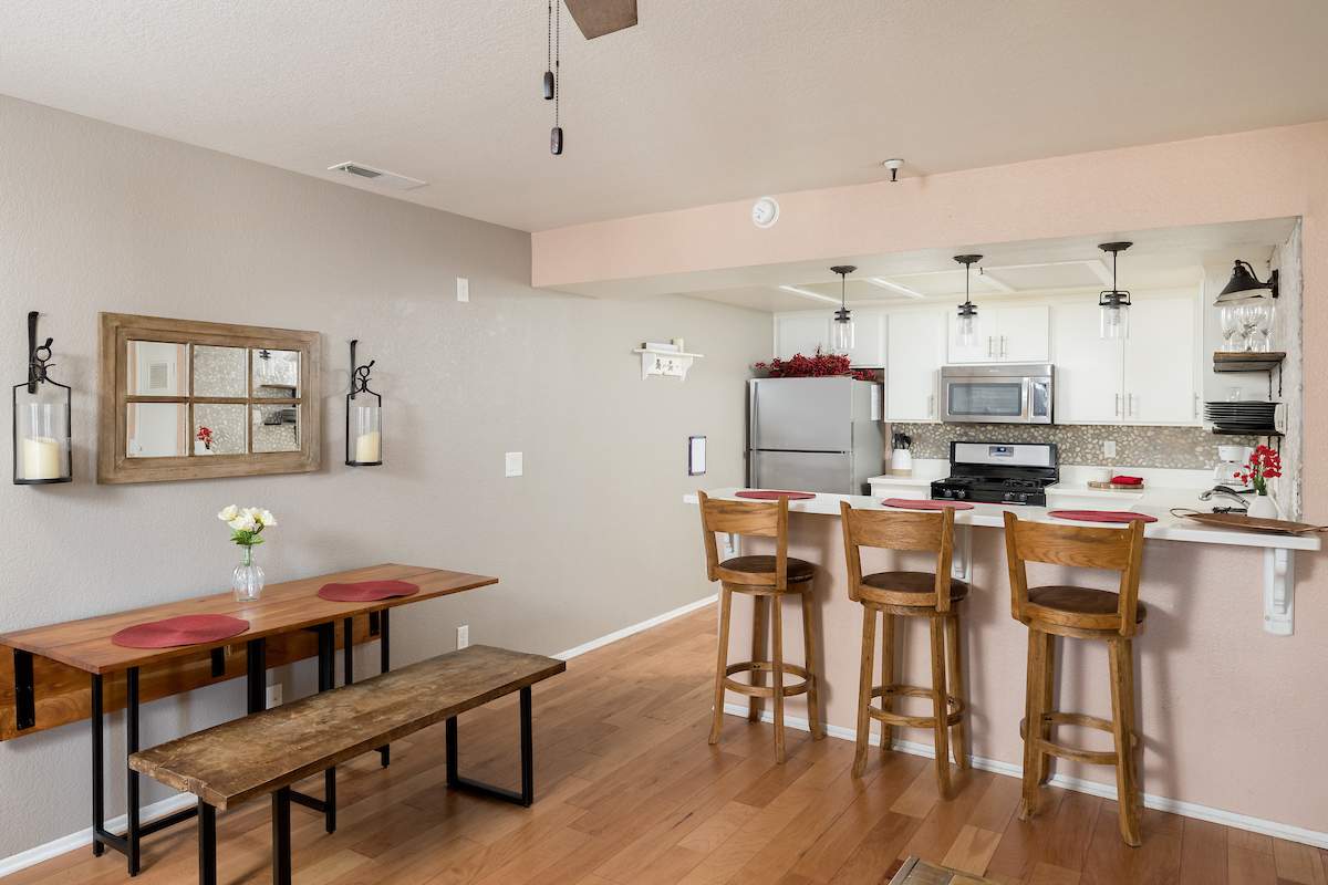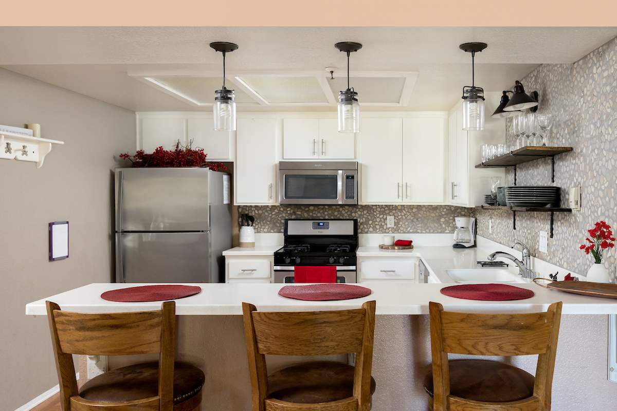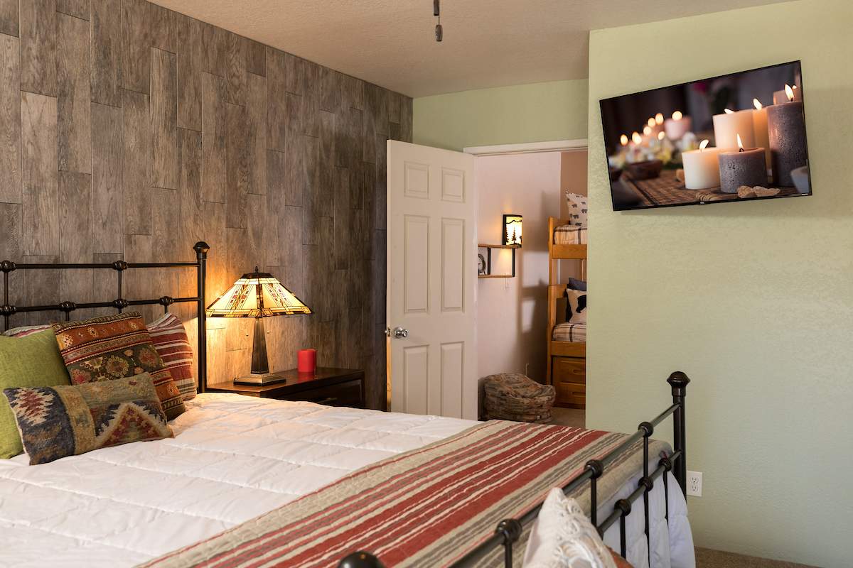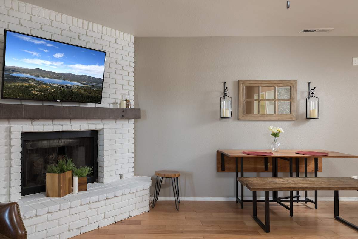 Located right down the street from Snow Summit, you can’t go wrong with this freshly updated condo. Light and bright interior with pleasing modern colors. Brick fireplace with efficient gas log insert. Attractive and durable wood laminate flooring. Remodeled kitchen w/stainless, breakfast bar with pendant lighting. Spacious main bedroom has accent wall and patio door for deck access. Upper and lower decks, rare garage w/convenient alley access. Turnkey and ready for you to start making memories and/or vacation rental income today.