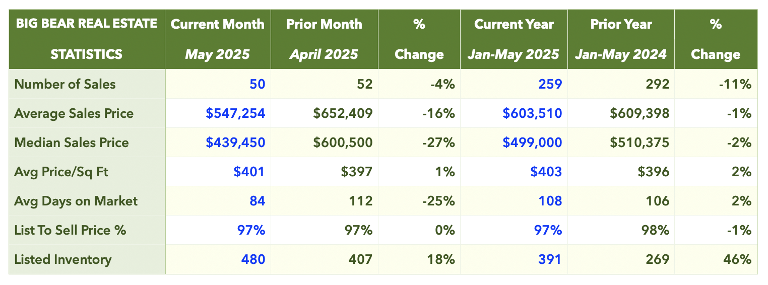 🏔️ Big Bear Real Estate Market Update – May 2025