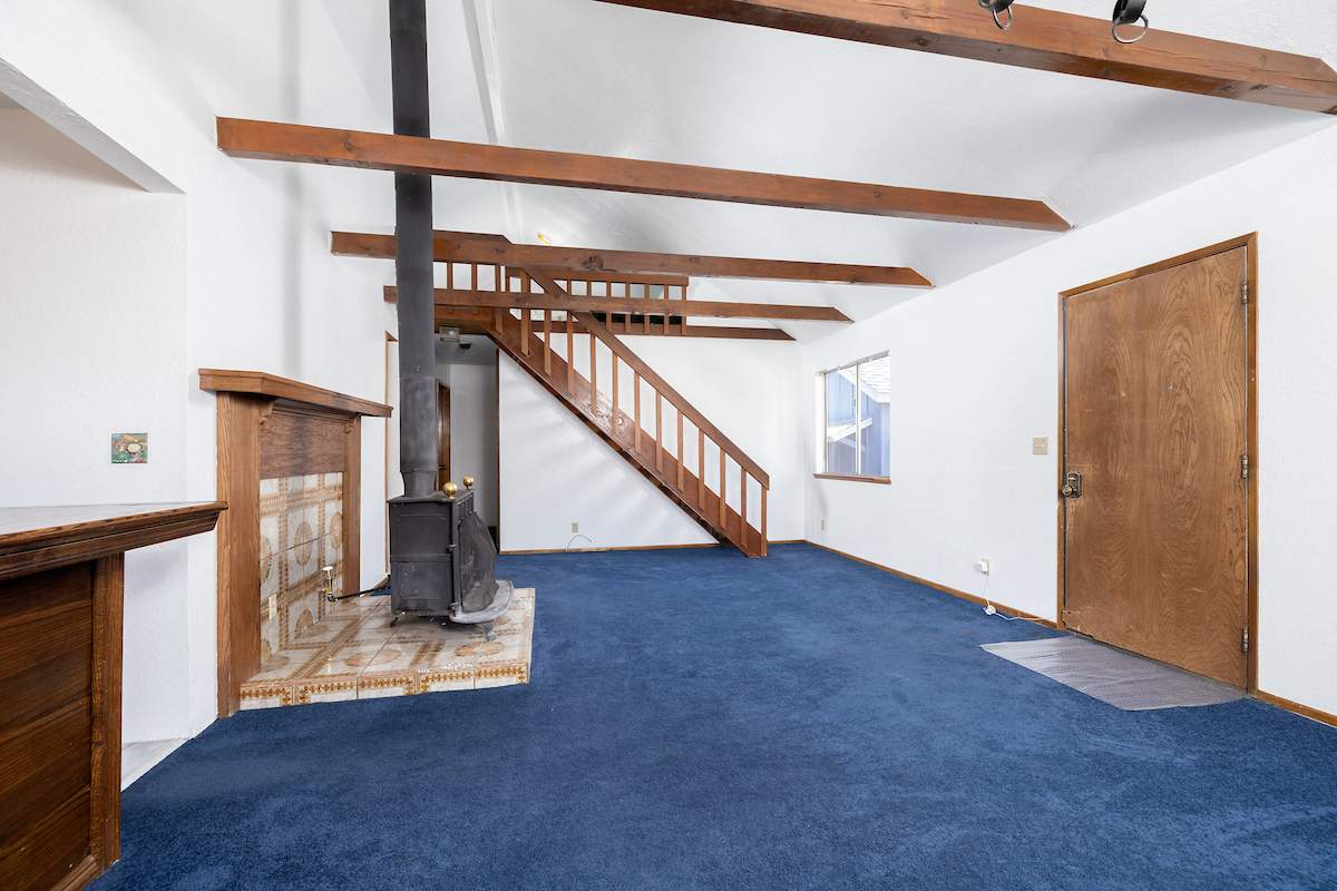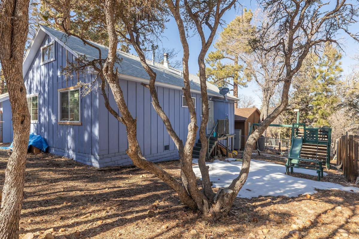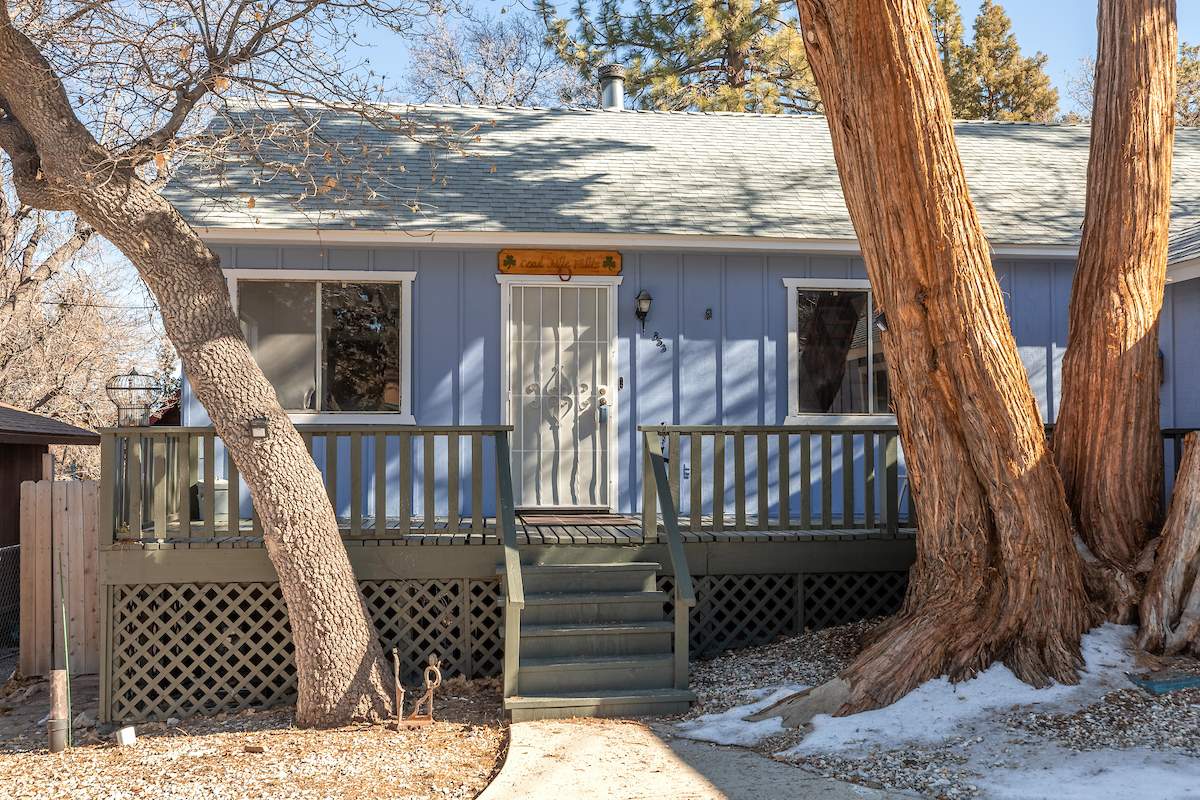 Steps from national forest on a large lot in upper Sugarloaf, this cabin has 2 bedrooms, 2 baths + loft and detached garage. Circular concrete driveway offers plenty of easy access parking with room for boat or RV on included adjacent parcel. Living room features beamed ceilings and efficient wood stove. Kitchen has custom cabinetry, plenty of storage and counter space, and an attractive wood breakfast bar. Full size laundry hookups in bathroom. Newer roof (4 years old), interior and exterior paint, wall heater, water heater and flooring.