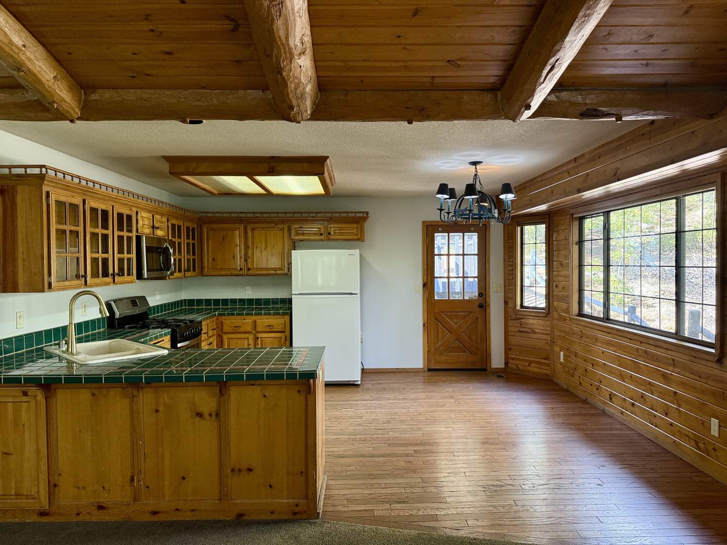 A true mountain escape in a premier Moonridge location—just a block from Bear Mountain Ski Resort and steps from the National Forest. This log-sided retreat offers an authentic mountain feel in a peaceful treehouse-like setting. Nestled on a heavily treed lot, it’s the ideal spot for both adventure and relaxation. The inviting great room features a rock/brick fireplace, wood-beamed ceilings with recessed lighting, and log-accented walls—warm, open, and designed for cozy gatherings. Large windows frame the surrounding oaks and pines and bring the outdoors in. The eat-in kitchen offers glass-faced cabinets, tile counters, and plenty of space to prepare meals while enjoying the view. Each bedroom has wood accents and wainscoting, creating comfortable spaces for family and guests. A covered front porch sets the tone for a true cabin escape, while the spacious back deck is perfect for barbecues, entertaining, or simply soaking in the serenity of the forest. Located just one block from Bear Mountain and steps to hiking and biking trails, this home provides quick access to year-round recreation. The lake, golf course, and Village shops and restaurants are only a short drive away, making it convenient for both locals and visitors alike. With its sought-after Moonridge location, log-style design, and remarkable setting, this property would make an excellent weekend getaway, and/or high-demand vacation rental. A rare opportunity to own a true Big Bear cabin in one of the most desirable areas on the mountain.