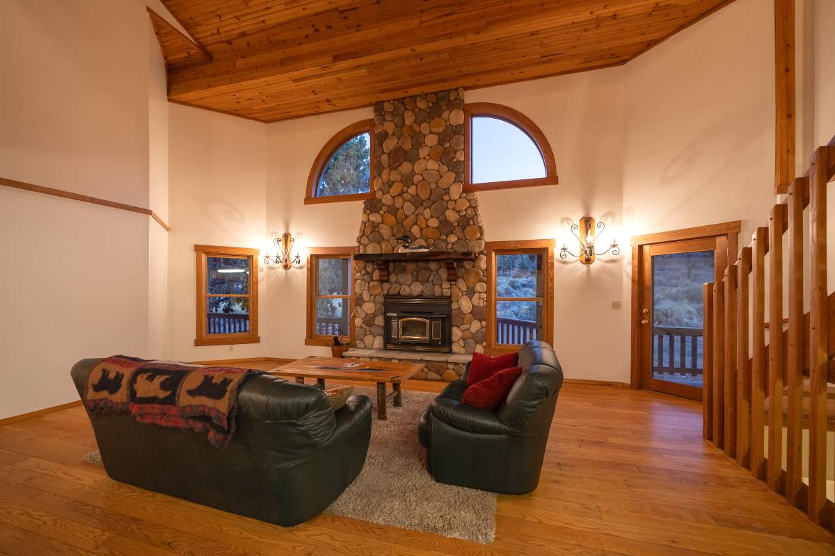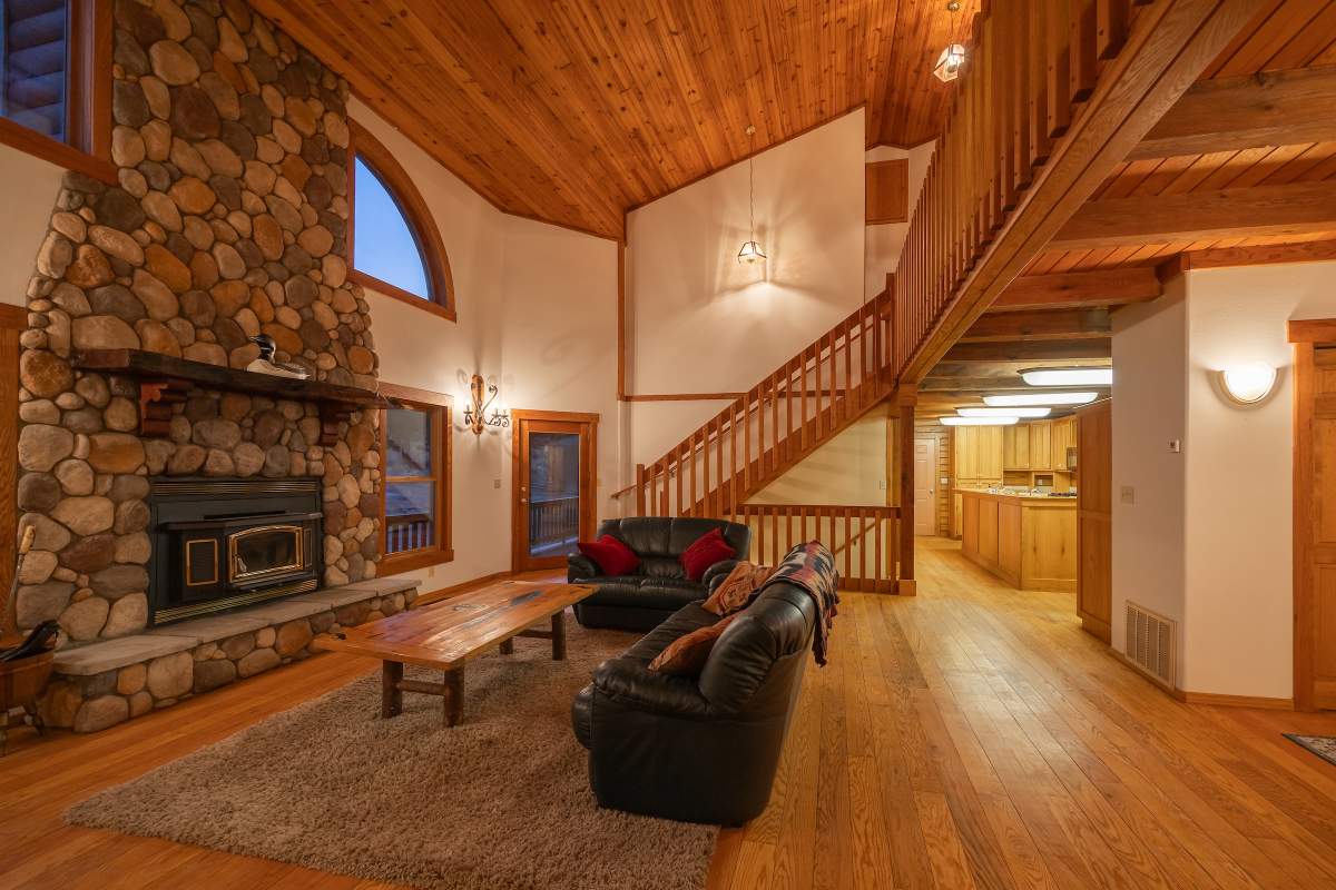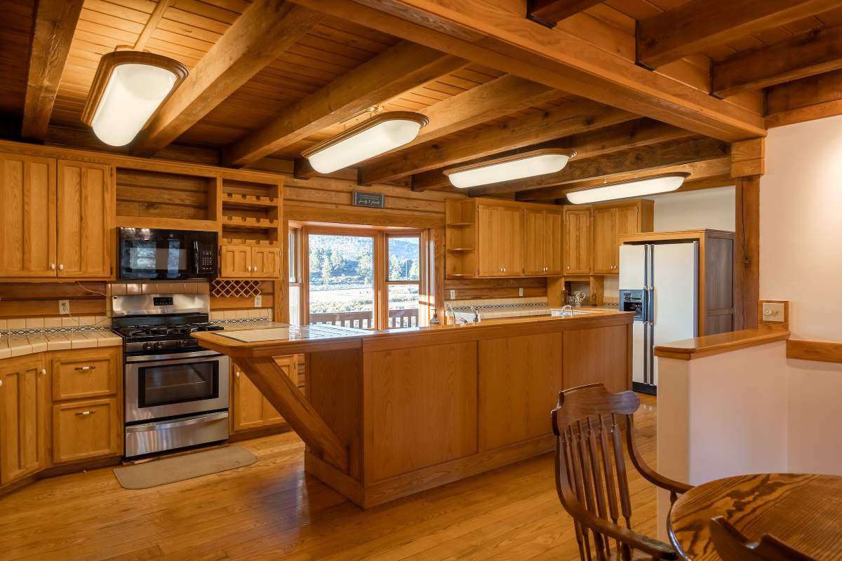 Home…home on the range. Nestled on 2.5 acres in a hidden valley adjoining national forest, you will find this beauty of a custom log home offering ultimate peace and tranquility with wide open views in all directions. Off the beaten path, but easily accessible from the highway, and just steps to the iconic Pacific Crest Trail. Enter the front door and you are welcomed to an impressive great room with soaring T&G ceilings and a grand river rock fireplace. Beautiful solid hardwood flooring throughout, tons of windows allow for washes of natural light in every room. Entertainer’s kitchen has a bay window, an island with additional prep sink, custom cabinetry, and adjacent formal dining room with beamed ceiling and access to the covered back deck. This accommodating ranch-style home has room for a crowd with 6 bedrooms, plus a spacious 1429 sq ft finished basement providing additional living space and myriad storage options, including a wine closet. The primary bedroom on the main level features beamed ceilings, a walk-in closet, and french doors opening to deck; the en suite bathroom boasts an elegant spa tub and separate walk-in shower. Energy efficient items include dual pane windows, central forced air heat, two water heaters, plus laundry. The property is on it’s own private well. This home has been lovingly refreshed and is ready for you to add your personal touches to make it yours. Bandit the burro says: “The apples here are delicious.”